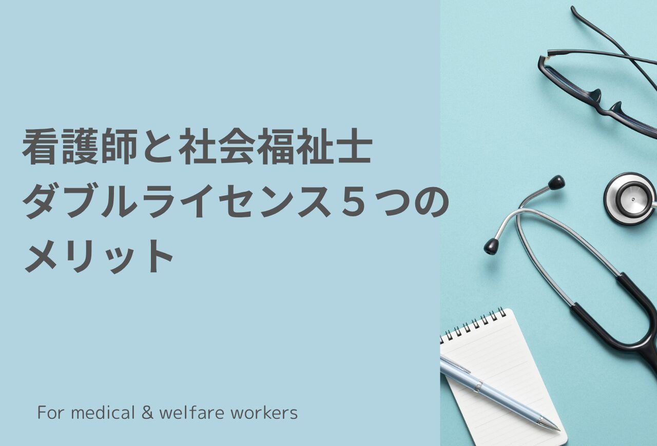 看護師として働いていて、このままでいいのだろうかと不安になったりすることもあるでしょう。看護師と社会福祉士のダブルライセンスを考えている人もいらっしゃるでしょう。ダブルライセンスのメリットはあるのでしょうか?結論から言うと、待遇や給与面でのメリットはあまり期待しない方が良いです。しかし、福祉施設での仕事をする上で、役に立つことはたくさんあります。